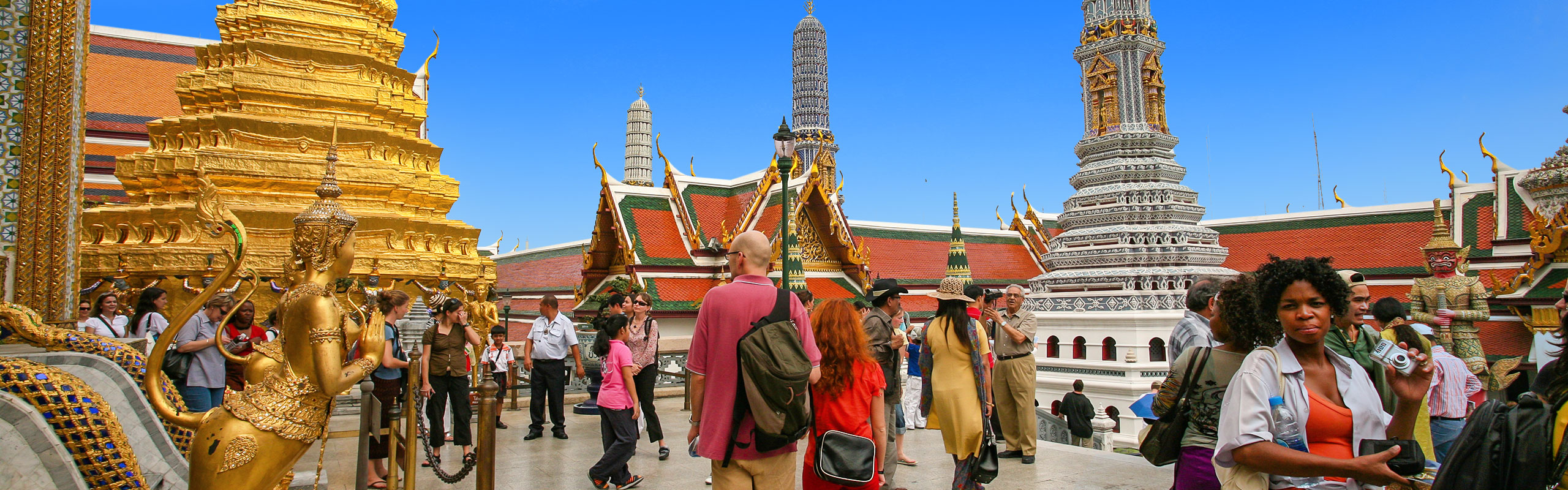 Wat Traimit with golden Buddha, Wat Pho with reclining Buddha, Grand Palace, Wat Phra Kaew, cruise on the Chao Phraya River, Wat Arun (Temple of Dawn). (B+L)