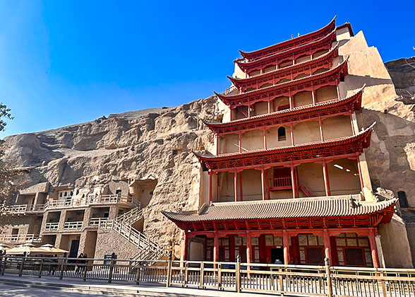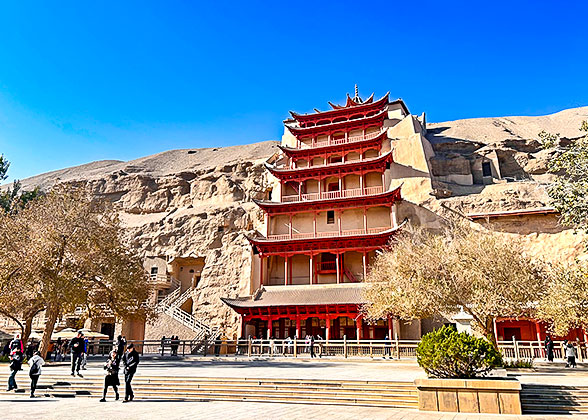 Situated near the boundary of Gansu, Qinghai and Xinjiang, the historical city Dunhuang is a renowned tourist destination, famous for the Mogao Caves. The landform of this area is a declining basin-plain from west to northeast, high in the north and south, and low in the middle, with Mt. Qilian in the south, Mt. Mazong in the north and desert from east to west.