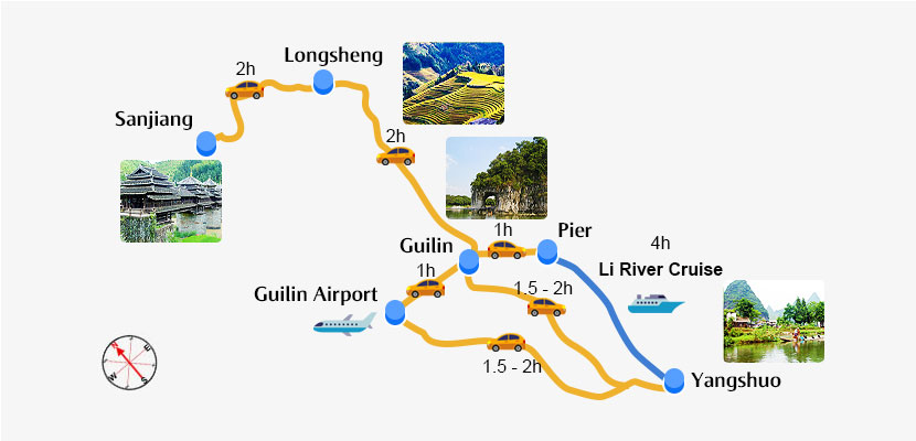 Choosing our private Guilin tour packages, you can enjoy spot-to-spot pick-up service, full-course companionship, and detailed explanations of stories behind those karst peaks. Planning to stay overnight in Yangshuo? Don’t worry - your luggage will be transported by your driver overland.