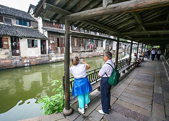 Shopping in the city is convenient. Visitors like to go to Qinghefang Street. It is one of the most famous and historic streets in the city and reflects the features of the Southern Song Dynasty (1127-1279). Shoppers can admire the antique buildings while purchasing items from a wide range of local goods such as silk, brocade, tea or maybe a beautiful fan.