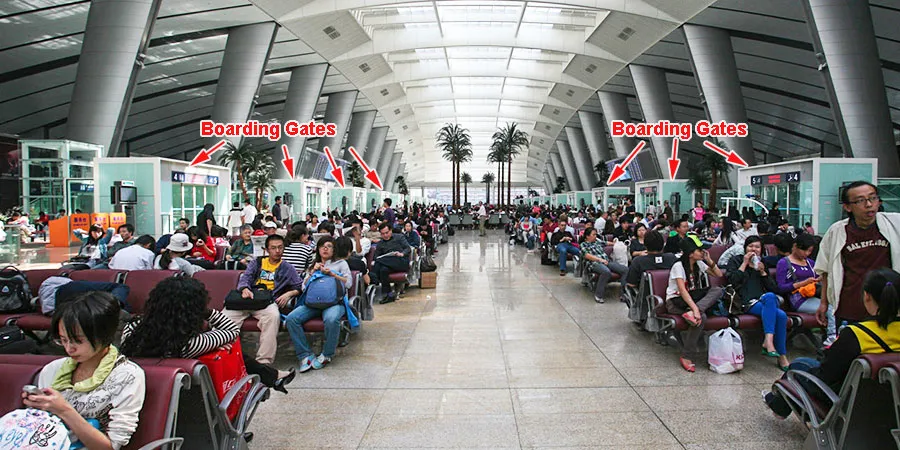 Step 3: Find the right boarding gate in the waiting hall and wait for boarding;