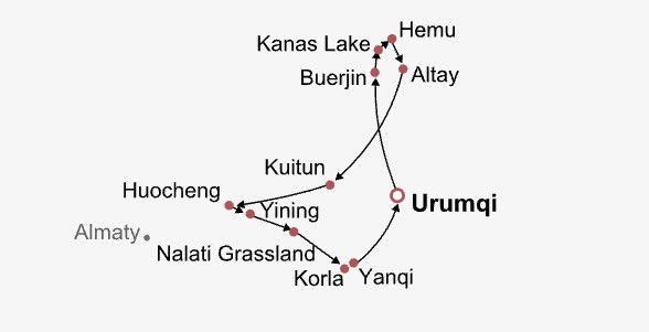 12 Days Urumqi - Buerjin - Kanas Lake - Hemu - Altay - Kuitun - Huocheng - Yining - Nalati - Bayanbulak - Yanqi - Urumqi from USD2509USD2207