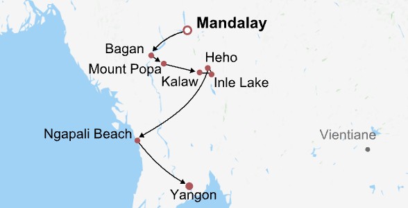 11-14 days: Extend your Myanmar vacation packages to two weeks if you wish to include Inle Lake, Ngapali Beach, the hiking paradise Kalaw, and the Irrawaddy River cruise.