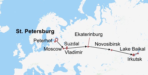 Russia, a fascinating country with iconic cities, rich history, and UNESCO World Heritage Sites, is definitely a special destination to visit. Travelers with one week duration can enjoy the top highlights of Moscow & St. Petersburg, from the Red Square and Kremlin to Peterhof and Catherine's Palace, and experience the most beautiful metro station in the world. As an extension of 2 or 3 days, the medieval Golden Ring cities, like Vladimir, Suzdal, Sergiev Posad, are good choices. For travelers with plenty of leisure time, a legendary journey on the longest railway - Trans-Siberian Railroad (9288 km) from Moscow to Vladivostok is one of the greatest travel adventures, taking 7 whole days for one way.