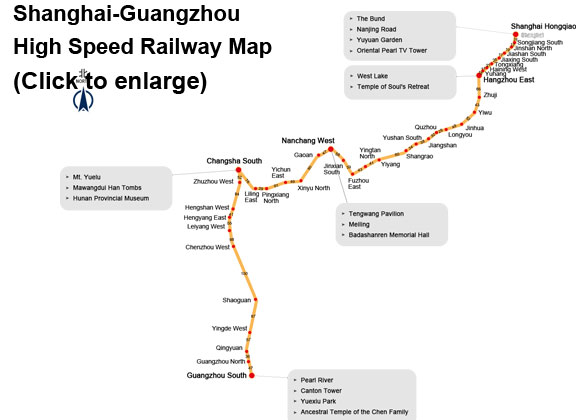 | | Shanghai - Guangzhou High Speed Railway Map | |  | | Shanghai - Guangzhou Bullet Train | |