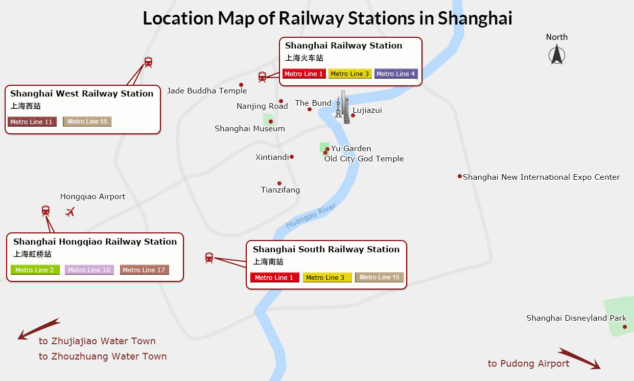 They are operated at four main railway stations: Shanghai Railway Station, South Railway Station, West Railway Station, and Hongqiao Railway Station.