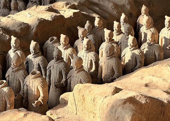 Today, your guide will escort you on a 1-hour ride to the suburb area to marvel at the spectacle of the Terracotta Army for the whole morning. Dubbed as the eighth wonder of the world, it is certainly one of the highlights of your 11 days China tour package. Witness a great army made of terracotta or bronze serving the afterlife of Emperor Qin Shi Huang (259 – 210 BC), the first emperor in China’s history. About these terracotta figures, one thing that never fails to capture everyone’s attention is their enigmatic lifelike details - take a close look to notice they all have single-edged eyelids, which were perhaps crafted so to make the whole army more formidable or less cute. Now, at a newly-set permanent exhibition hall, you can examine the details right in front of each warrior preserved within glass cases, among 230 collections, many of which have never been shown to the world before! All the relics are the most valuable and representative archaeological finds ever excavated, and how they are arranged to demonstrate in-depth Emperor Qin’s daily life and Qin people’s craftsmanship will blow your mind. With your guide, wonder at and gain more insights through the lately-introduced bronze cranes, colored figures, and gold and silver artifacts.