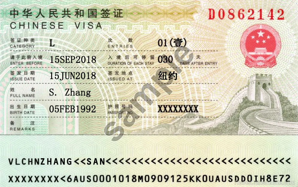 | Sample of China Tourist Visa |