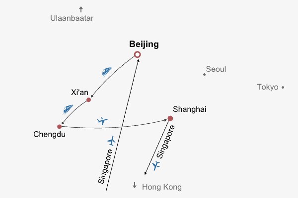 There are several direct flights available daily for travelling from Singapore to Beijing. The flight duration is around 6.5 hours. We will confirm with you the flight information in advance to ensure you have a smooth departure and arrival.
